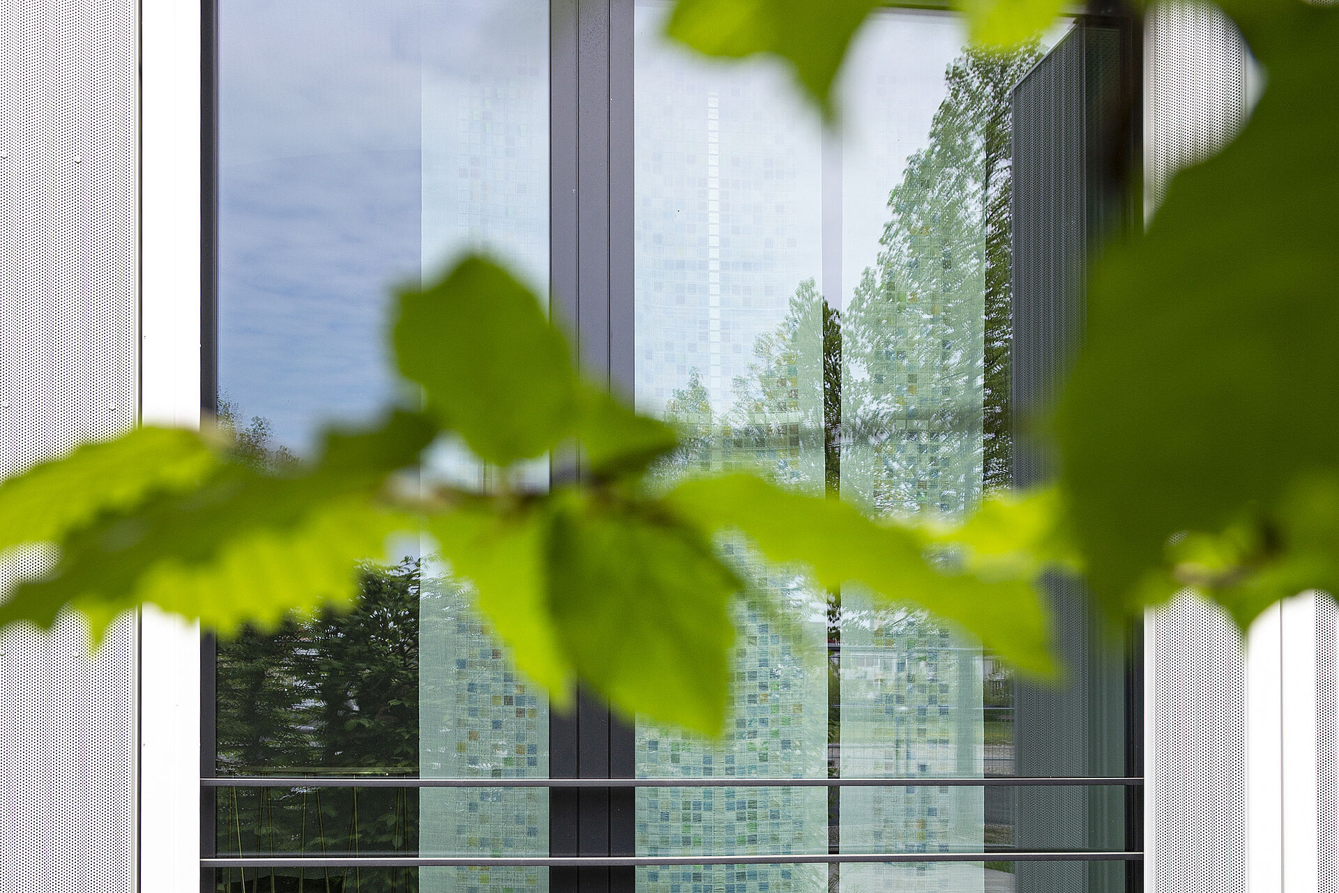 Die drei Fensterflächen sind handgewebte Unikate, die innerhalb eines Monats von Rosalia Penzko in der Diakoneo Paramentik Textilkunst am Handwebstuhl hergestellt wurden. Mehr als 3.000 farbige Folienquadrate hat sie dazu, dem Entwurf folgend, an die richtige Stelle im Gewebe platziert.